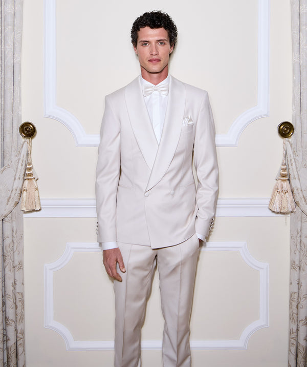 • Tiavllya Fashion 2 Pieces Mens Suit Flat Double Breasted Tuxedos For Wedding (Blazer+Pants)