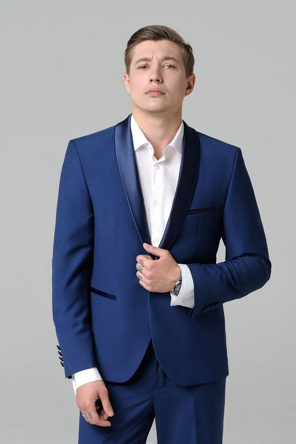 • Tiavllya Fashion Men's Suit Flat 2 Pieces Shawl Lapel Tuxedo For Prom (Blazer+Pants)