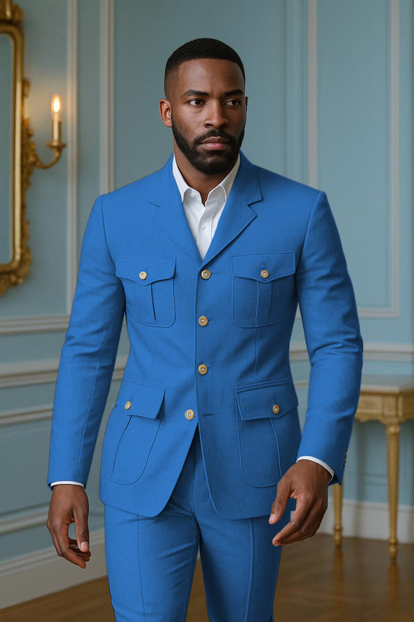 • Tiavllya Tiavllya 2 Piece Men's Suit with Metal Clasp Slim Fit Suit Stylish Tuxedo Suit Set (Blazer+Pants)