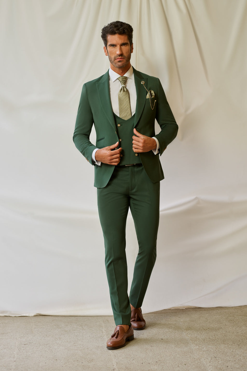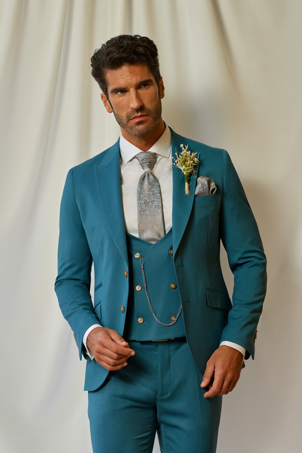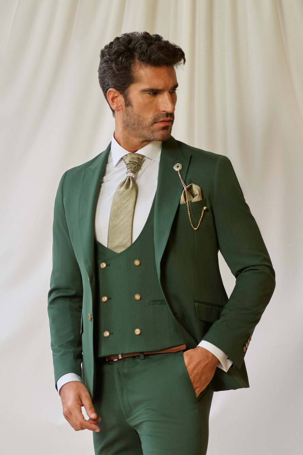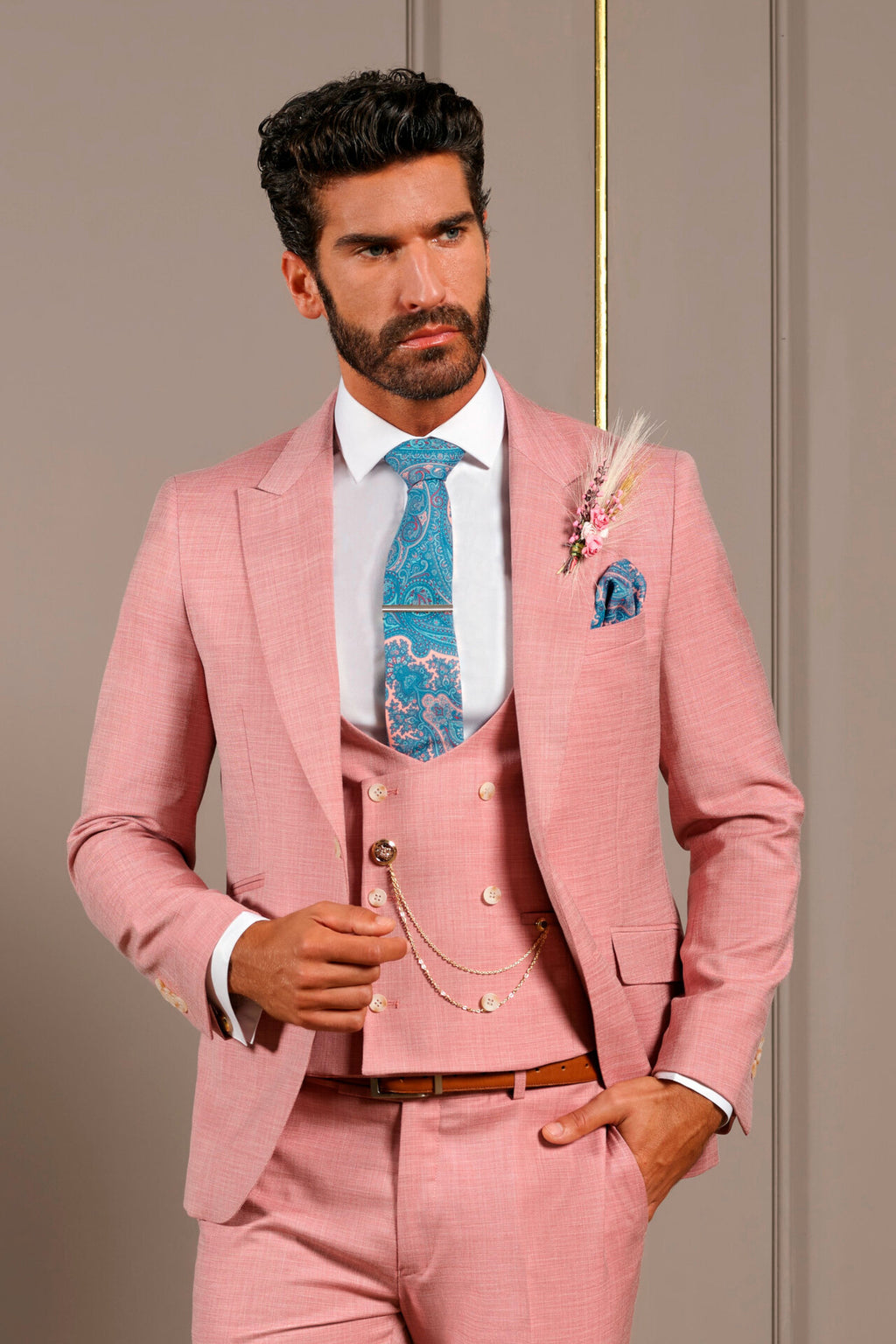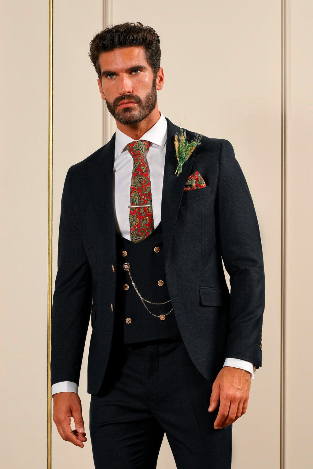 This is a classic and stylish three-piece suit, made of 35% rayon and 65% polyester blended fabric, which is flat, crisp, comfortable and durable. The suit includes a suit jacket, vest and trousers, with exquisite details.