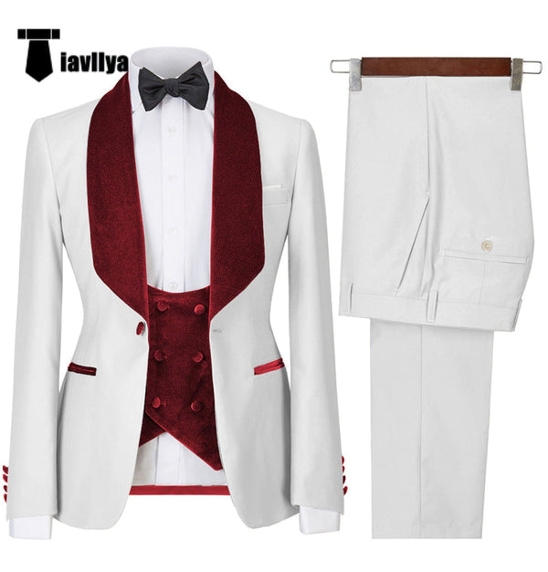 • Tiavllya Tiavllya Fashion Men's Suits Slim Fit 3 Pieces Notch Lapel Tuxedos (White Blazer+Vest+ Pant)