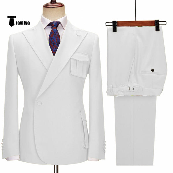 • Tiavllya Fashion 2 Pieces Mens Suit Flat Peak Lapel Double Breasted Tuxedos For Wedding (Blazer+Pants)