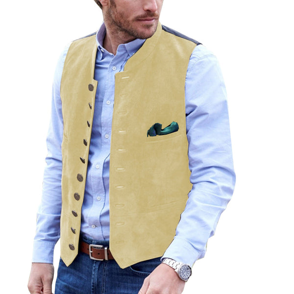 • Tiavllya Casual Men's Classic Suede Stand Collar Waistcoat Denim Vest