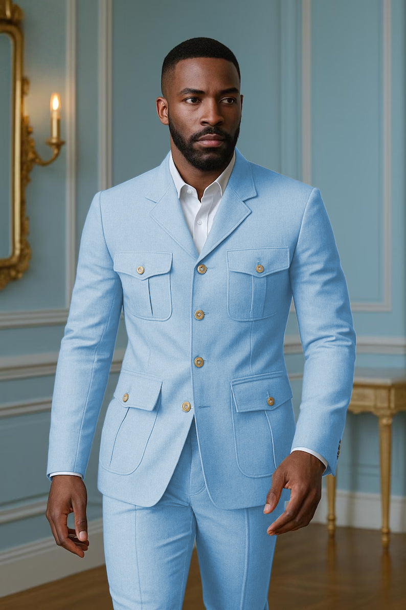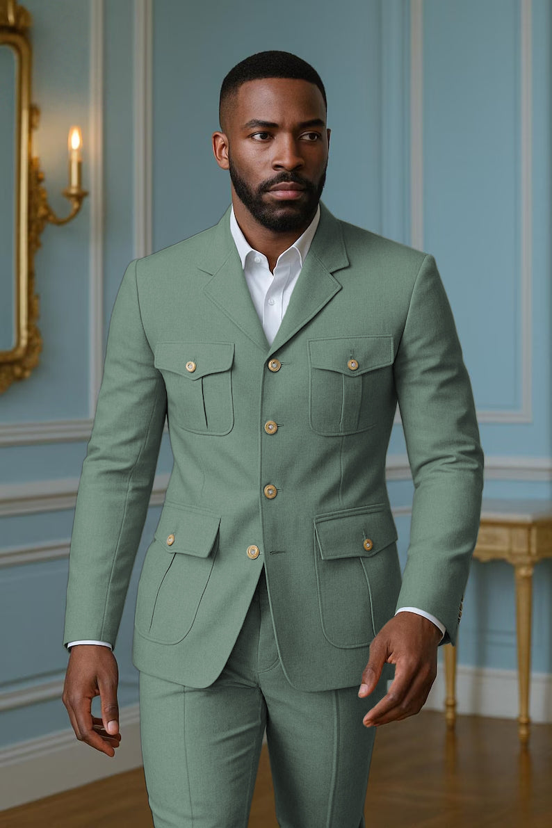 👔 Blazer: Notch Lapel, Single-button closure, center vents, 2 flap pockets, 2 welt chest pocket, 2 inside pockets, sleeve slits with 4 cuff buttons, fully lined for a structured and comfortable fit.