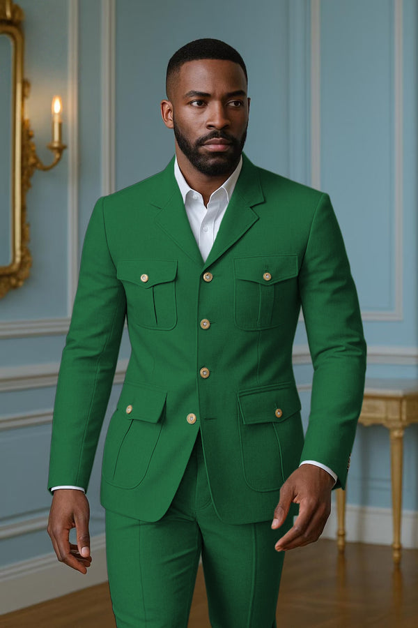 • Tiavllya Fashion Green Suit For Men High-end British Style 3-Piece Suit For Men(Blazer+vest+Pants)
