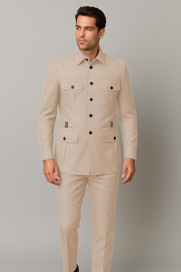 • Tiavllya Tiavllya 2 Piece Men's Suit with Metal Clasp Slim Fit Suit Stylish Tuxedo Suit Set (Blazer+Pants)