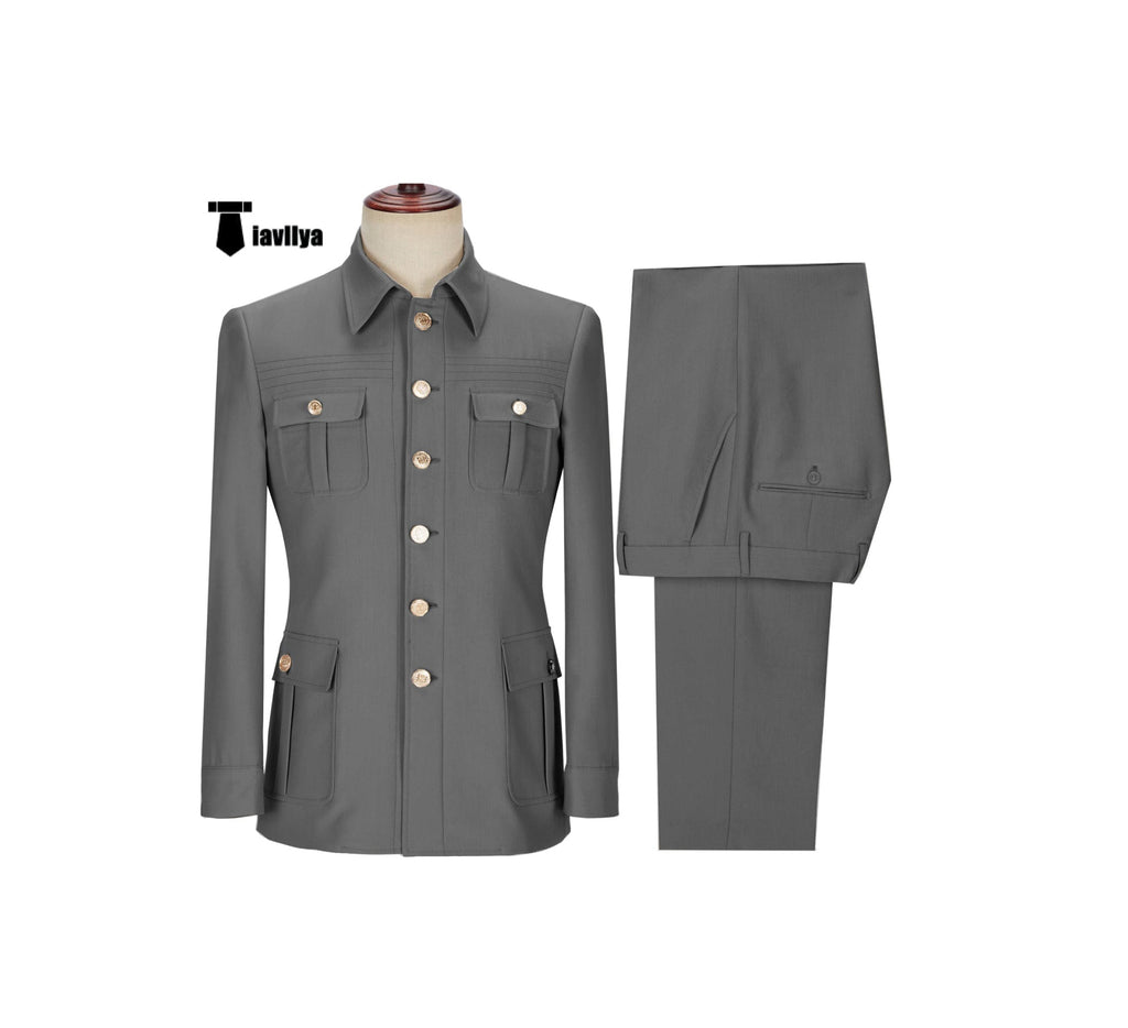 The suit jacket adopts a stand-up collar design, which is unique and elegant, showing extraordinary temperament. The single-breasted six-button design is slim and upright, showing gentlemanly demeanor. Four flap pockets combined with an inner pocket are both beautiful and practical. The side slits enhance freedom of movement and make wearing more comfortable. The cuffs are equipped with four cufflinks slits, with exquisite details and high-end taste. The full lining design makes the wearing experience more comfortable and fit.