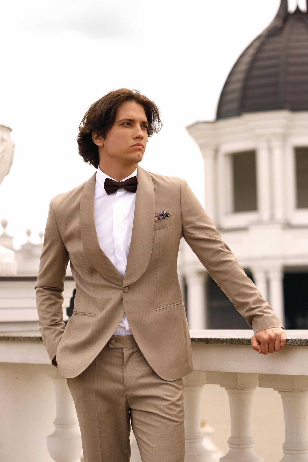 Made from a blend of 20% wool and 80% polyester, this three-piece suit combines elegance and durability for a variety of formal or semi-formal occasions.