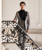 The matching vest comes with a sharp shawl lapel, double-breasted front with five buttons, two real bound pockets, and a metal elastic adjustment buckle at the back for a custom fit.