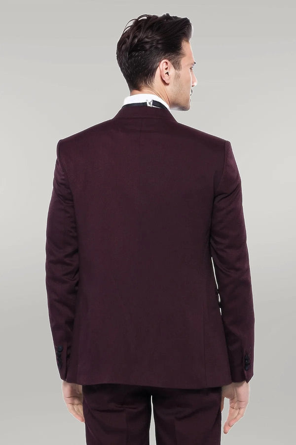 • Tiavllya Fashion Men's Burgundy Suit Slim Fit 2 Pieces Shawl Lapel Tuxedo For Wedding (Blazer+Pants)