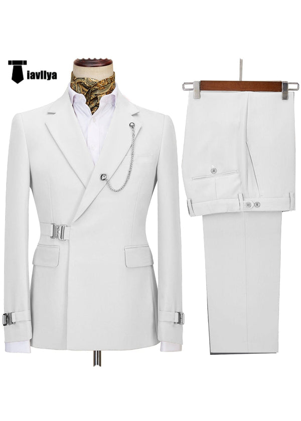 • Tiavllya Fashion Men's White Suit Slim Fit 2 Pieces Shawl Lapel Tuxedo For Wedding (Blazer+Pants)