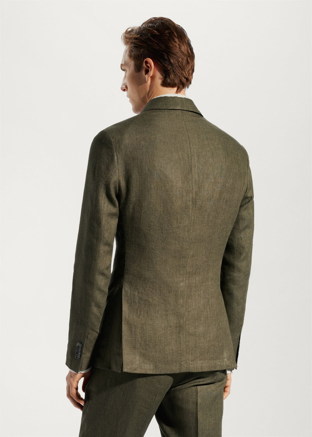 The suit jacket adopts a flat lapel design, a single-row one-button structure, and a side slit cut to create a slim silhouette. The front is equipped with two flap pockets and a chest welt pocket, with an inner pocket inside to meet daily storage needs; the cuffs are split and equipped with four cufflinks, with exquisite details and an overall full lining design to enhance wearing comfort and texture.