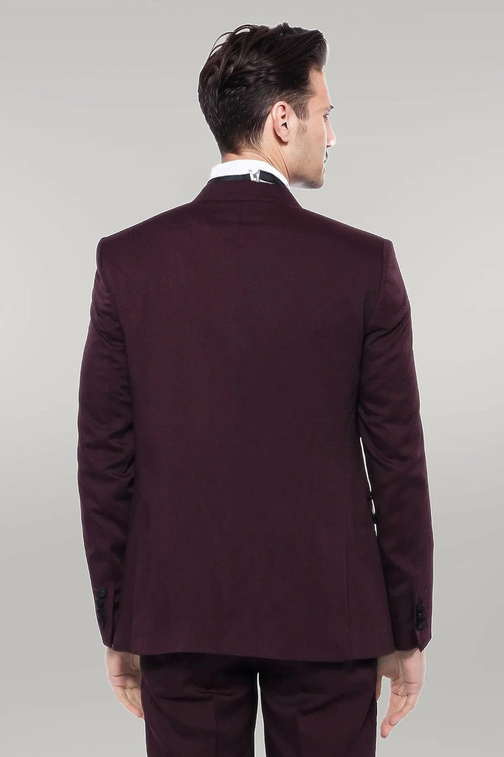 The jacket adopts a classic sword collar design, single-button opening and closing, with side slits and practical pockets (2 front pockets, 1 chest welt pocket, 1 inner pocket), and a fully lined structure to enhance the overall texture; the vest is a V-neck with six buttons, and the back is equipped with a metal adjustment buckle for easy adjustment of tightness; the trousers are closed with a zipper, with 2 hip pockets and 2 slip pockets, which are practical and beautiful.