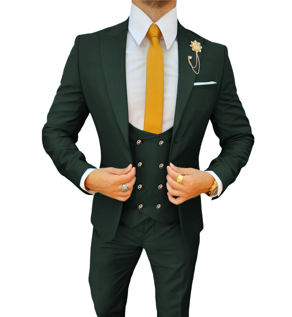 Tiavllya Fashion Men's Suit 3 Piece Peak Lapel Flat Tuxedo Wedding (Blazer+Vest+Pants)