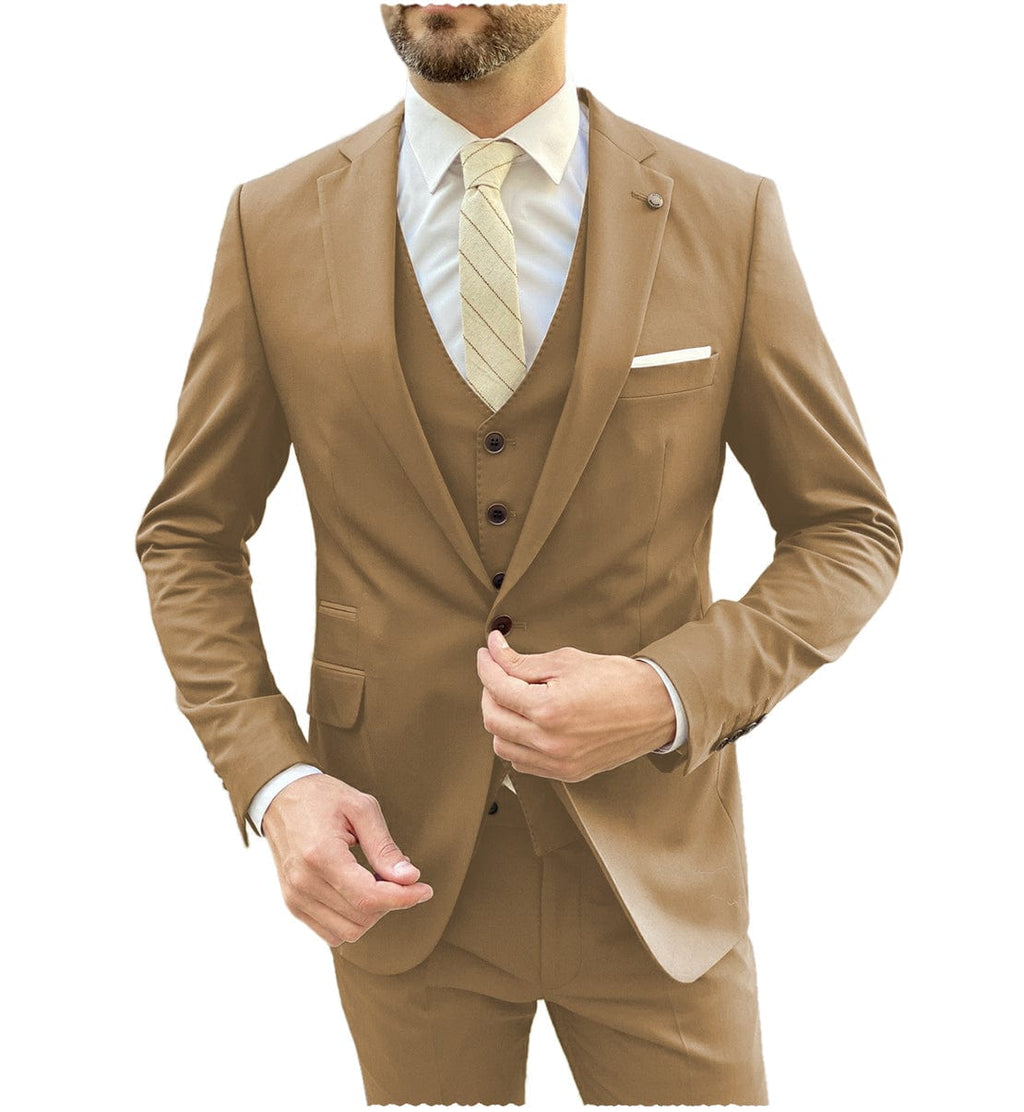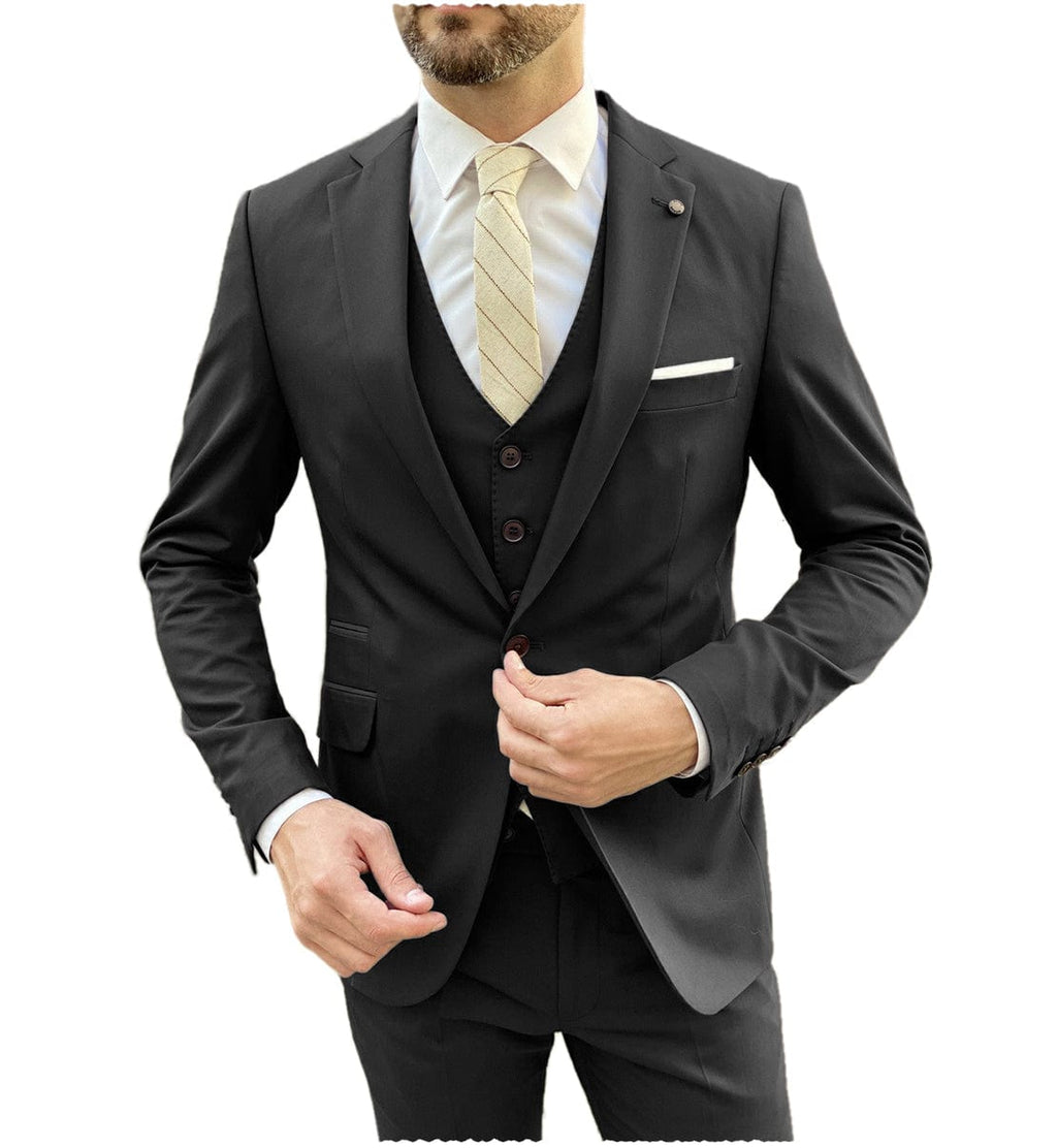 Tiavllya Business 3 Pieces Mens Suit Flat Notch Lapel Tuxedos For Wedding (Blazer+vest+Pants)
