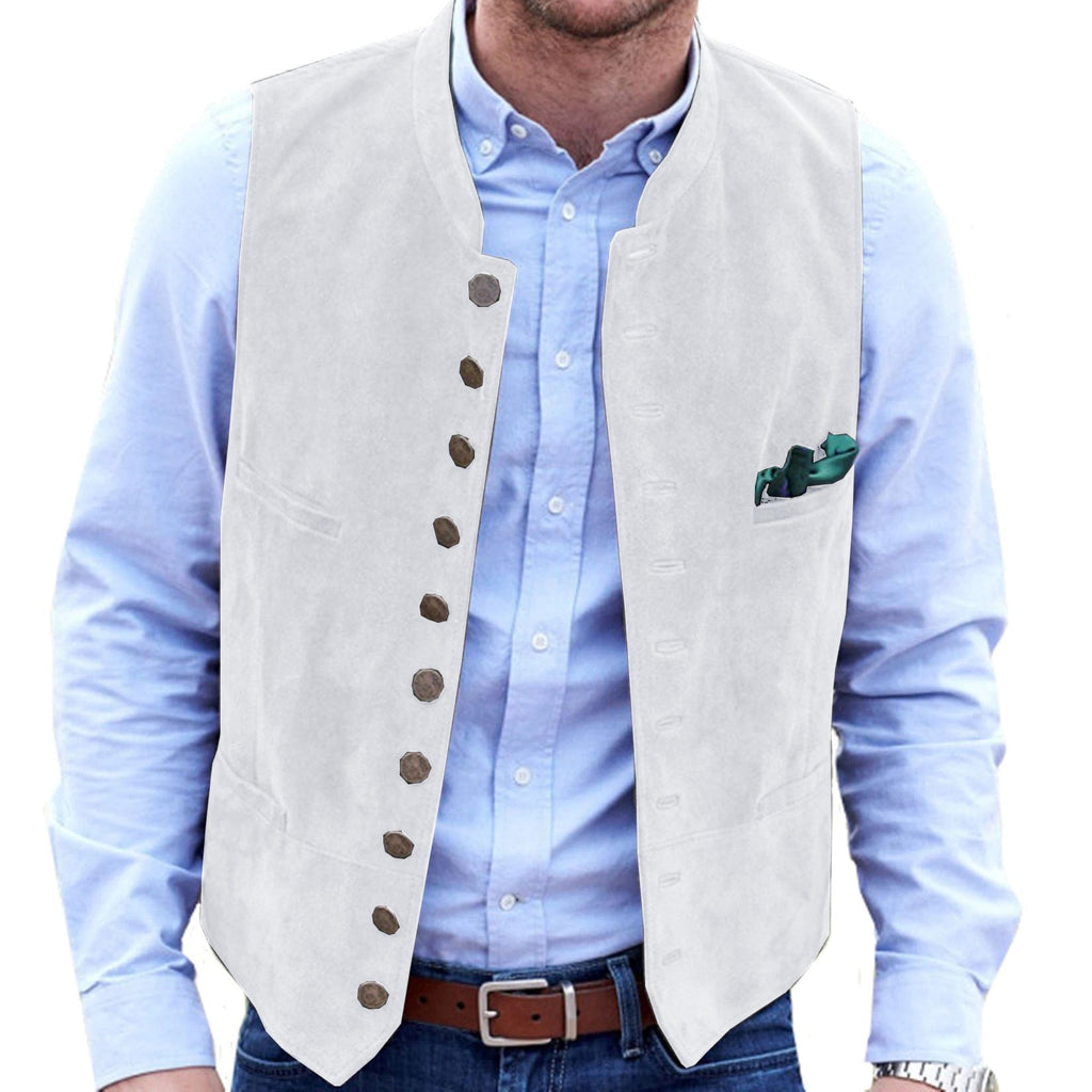 Tiavllya Casual Men's Classic Suede Stand Collar Waistcoat Denim Vest
